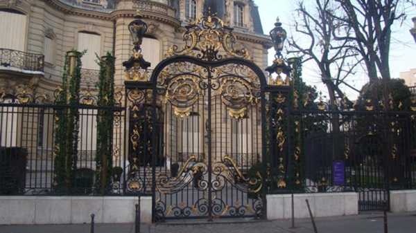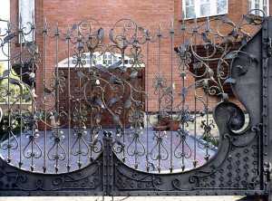 Металлические ворота, украшенные ковкой.