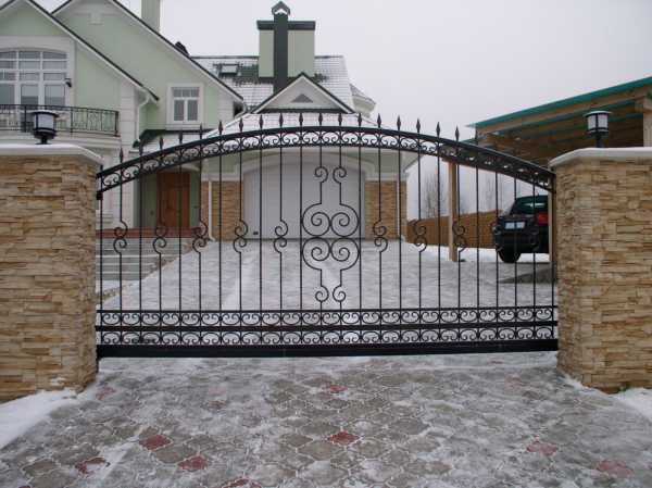 Металлические ворота с кованой аркой.