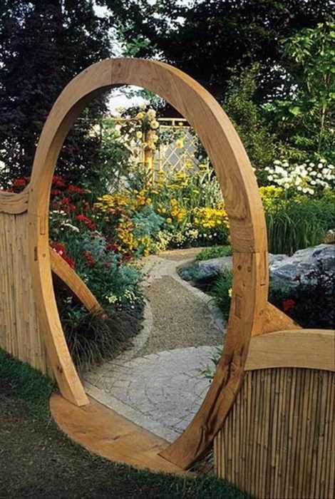 Круглая арка из натурального дерева — прекрасное решение для гостеприимных хозяев.