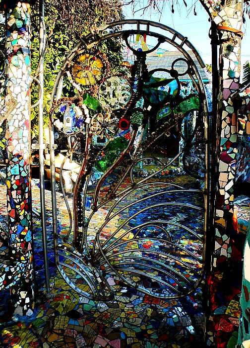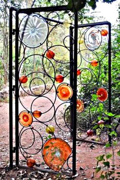 Кованая калитка, украшенная мозаикой.