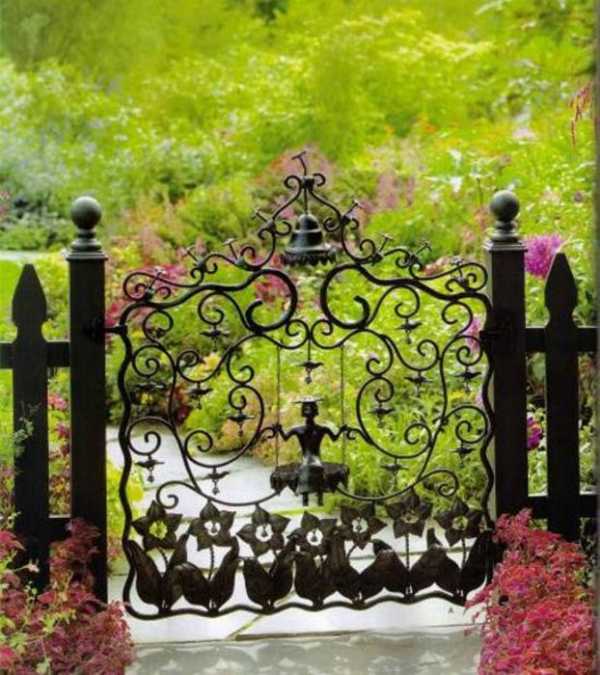 Забавная кованая калитка, которая идеально подойдет для украшения забора трудолюбивого дачника.