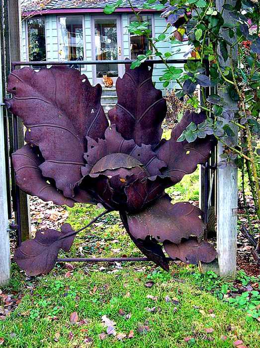 Реалистичная скульптура в виде капусты стала неповторимым украшением самой обыкновенной металлической калитки.