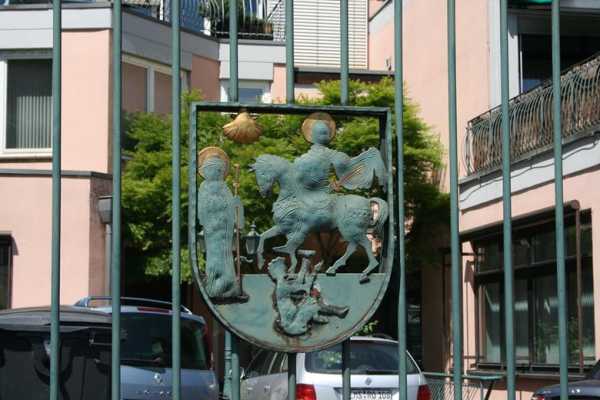 Металлическая калитка, украшенная скульптурой.
