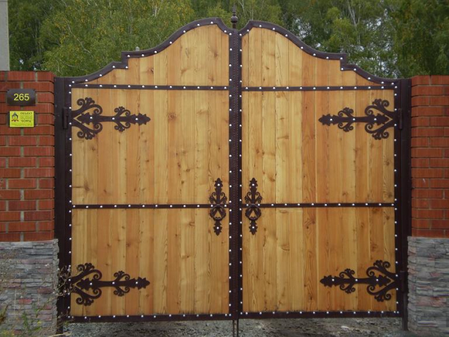Деревянные ворота с элементами ковки