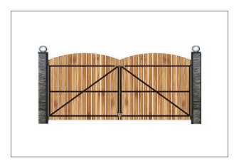 Полноценная зона входа кроме калитки включает ворота – обычно их устанавливают в паре. При заборе из штакетника ворота делают обычно шириной 2,8-3 м. Створки имеют такую же конструкцию, как у калитки, только детали лучше собрать не на шурупы, а на шипы. Столбы необходимо дополнительно укрепить. Для навешивания створок на столбы используют специальные накладные петли для ворот, которые устанавливают с внутренней стороны (ворота обычно открываются в сторону участка). Важным элементом являются подпятники – небольшие столбики под нижней кромкой створок, которые не дают воротам перекашиваться в закрытом и открытом состоянии.