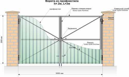Устройство ворот из профнастила.
