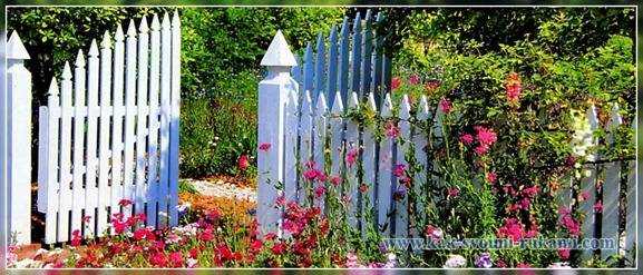 Простая деревянная калитка из штакетника подходит для садика в сельском стиле. Она достаточно прочна, чтобы не выпускать детей и животных за пределы участка, но благодаря небольшой высоте смотрится гостеприимно и словно приглашает войти.