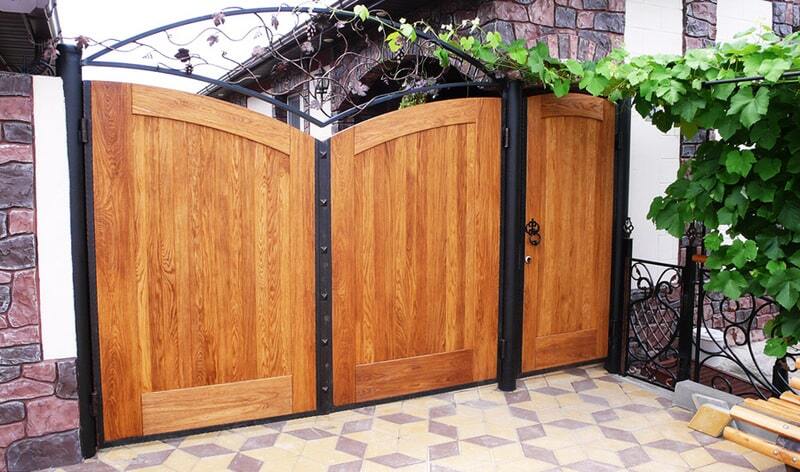 Распашные деревянные ворота остаются стандартом в дизайнерском строительстве.