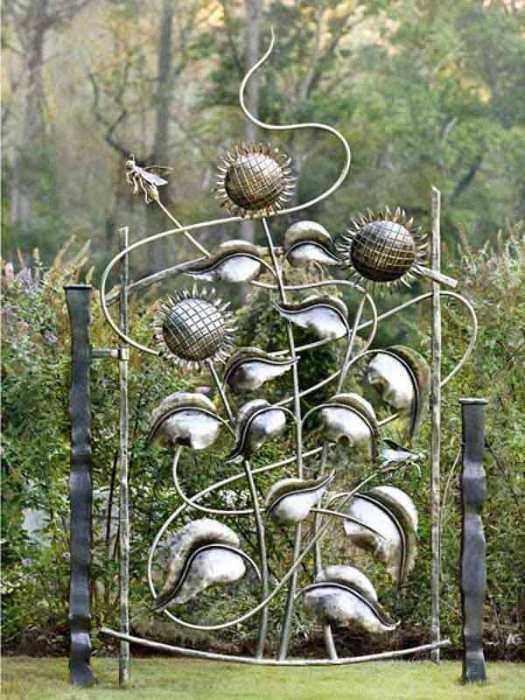 Изысканным дизайном отличаются кованые экземпляры. Ручная работа позволяет каждый раз создавать уникальные изделия с неповторяющимся узором. При желании скрыть от окружающих внутреннее убранство участка, конструкция закрывается цельным металлическим полотном. Но особым королевским шармом обладают ажурные экземпляры. Значительная цена изделия окупается продолжительным периодом эксплуатации. Сложность при монтаже может представлять вес красивой конструкции.
