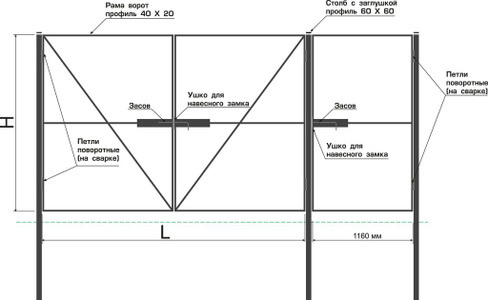 Перед началом работ следует продумать конструкцию: рассчитать габариты ворот, их нагрузку на крепления и опорные столбы.