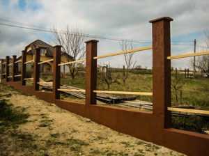 Направляющие рельсы для раздвижных воротин располагаются вдоль ограждения участка. Тем самым эффективно решается задача экономии пространства, и проем для проезда автомобиля ограничивается только боковыми опорами.