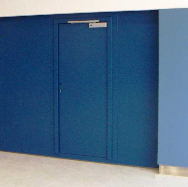 - Гладкая 1-створчатая дверь с фальцем и порогом устанавливается для экстренной эвакуации