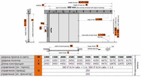 - для отката не требуется больше места, чем ширина перекрываемого проема;