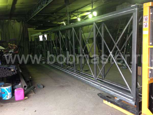 Первым делом следует изготовить раму, она является основой всей конструкции. Для ее изготовления можно применять трубы водопроводные металлические, швеллер, уголок 50х50 мм. Материал нарезают на детали нужной длины, после чего сваривают. Обычно рама имеет прямоугольную форму, при этом важно сделать ребра жесткости (как вертикальные, так и горизонтальные). Их следует делать из того же материала, что и сама рама. Ребра жесткости обеспечивают прочность и надежность всей конструкции.