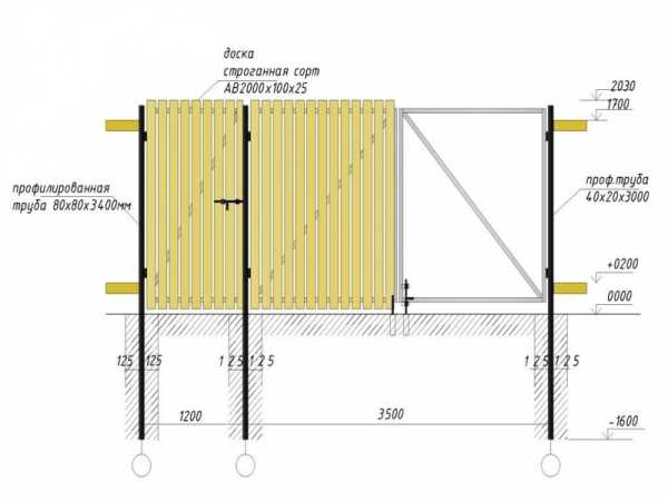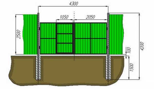 Начинают монтаж подобных конструкций с установки опорных столбов. Ниже описано, как выполнить монтаж опор для ворот своими руками. Чертежи, фото и видео помогут разобраться во всех тонкостях работ.