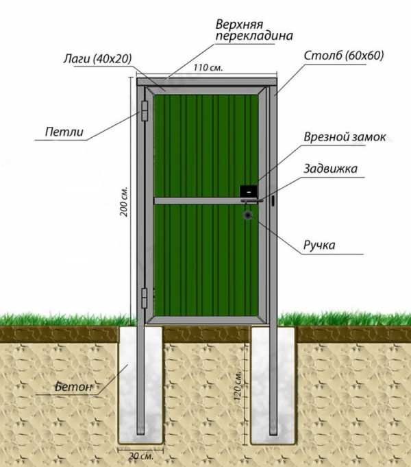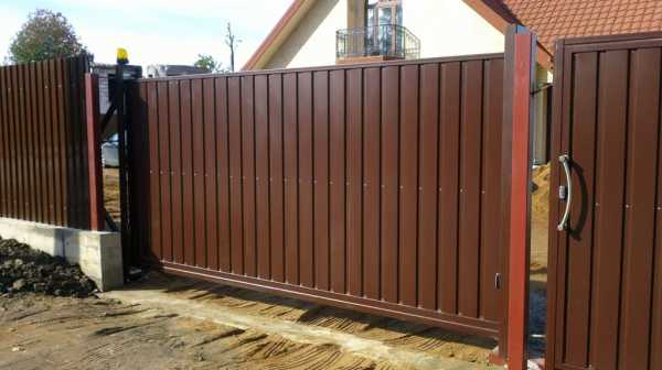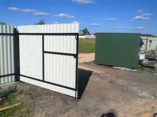 Такой способ считается самым простым, гарантирует быстроту выполнения и высокую надежность будущей конструкции. После установки опоры нужно закрепить к стойкам ограждения или, если требуется к дворовым постройкам. Далее привариваются навесы, на которые впоследствии подвешиваются собранные заранее створки.