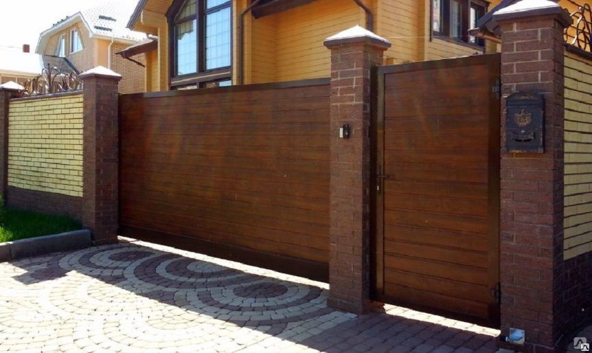 Наполнение — стальной лист и обрешетка из профильной трубы с декоративными элементами