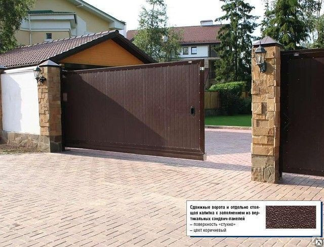 Наполнение — сендвич-панели коричневого цвета, установлены вертикально