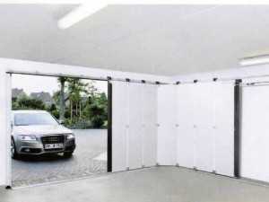 Отделку рамы можно сделать при помощи панелей, досок или оцинкованной стали с полимерным напылением. Пенополистирол используется для заполнения полости. При производстве, ширина ворот возможна максимально до 3 м, поэтому их нельзя использовать для гаража под два автомобиля. 1 м свободного пространства нужен, чтобы открыть ворота. Движение конструкции происходит по стальным дорожкам, которые прикреплены на потолке или на стене. Практически постоянно такие ворота для гаража оснащают пружинами, чтобы упростить процесс открывания.