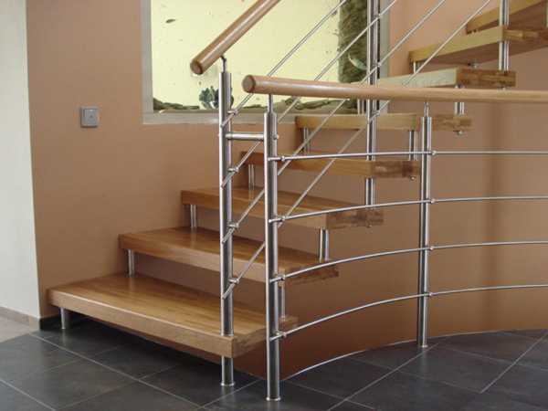 В качестве ступеней на таких лестницах используют дерево, камень, металл и прочное стекло. Благодаря такой конструкции, в помещении остается больше свободного пространства, а также ничего не мешает свободному прохождению света.
