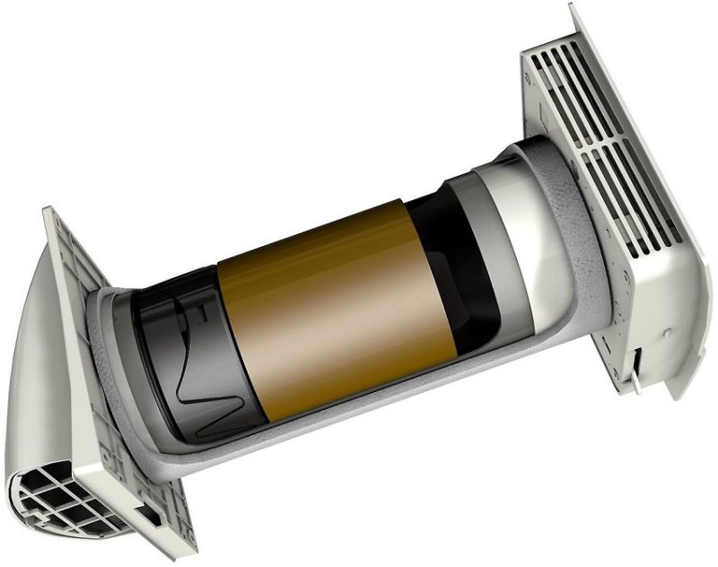 - Тепло воздуха из комнаты таким образом используется для подогрева холодного потока, который попадает в комнату через устройство.