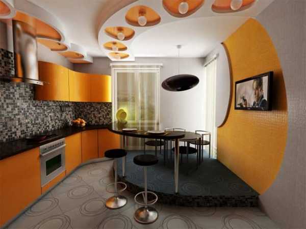 На крошечных по площади кухнях (менее 10м 2) барная стойка может заменить обеденный стол. Пользоваться ею, возможно, будет не столь удобно, однако, если площадь помещения действительно мала, узкая пристенная барная стойка может стать настоящим выходом из положения. Такая конструкция, конечно, не очень удобна, однако позволяет сохранить хотя бы немного свободного пространства на маленькой кухне.