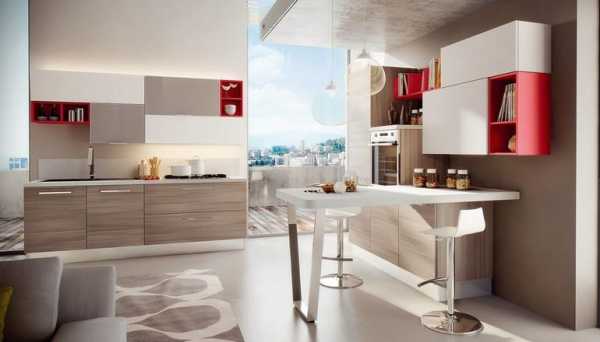 Совет: барная стойка в небольшом помещении может стать специально расширенный подоконник. Такой вариант позволит сэкономить место и даст возможность любоваться видом из окна во время приема пищи.