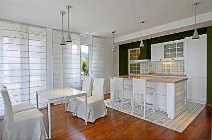 Когда речь идет о зонировании, чаще всего речь идет о П- и Г-образной планировке кухни, в которой барная стойка располагается перпендикулярно столешнице и является ее своеобразным продолжением. Одна из сторон такой конструкции может использоваться для приготовления пищи, а другая служить столом.