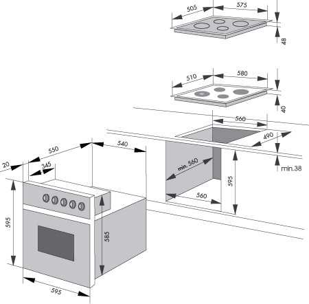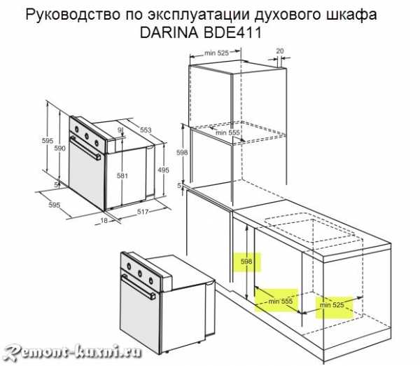 Найденные данные вызывали явное сомнение. Так и оказалось. Я нашел родную инструкцию PDF об эксплуатации выбранной мною духовки. Оказалось, что данная модель может вписаться (встроится в нишу с минимальными размерами 555×525×598 (Ш×Г×В), а фасадная панель имеет размеры 595×595 мм.