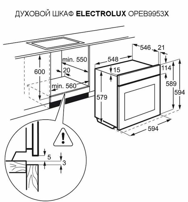 - Между боковыми поверхностями духовки должно быть расстояние до ниши не меньше 5 см.