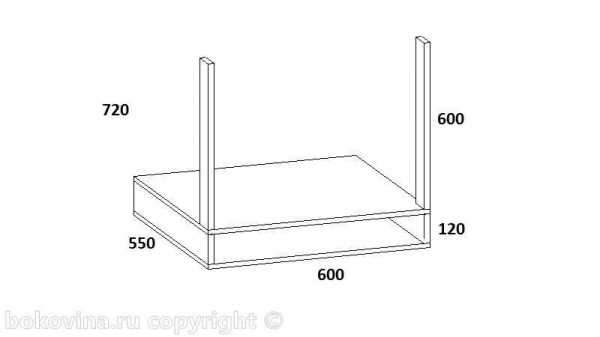 - Дно (ДВП) будет иметь размер – 542 на 450