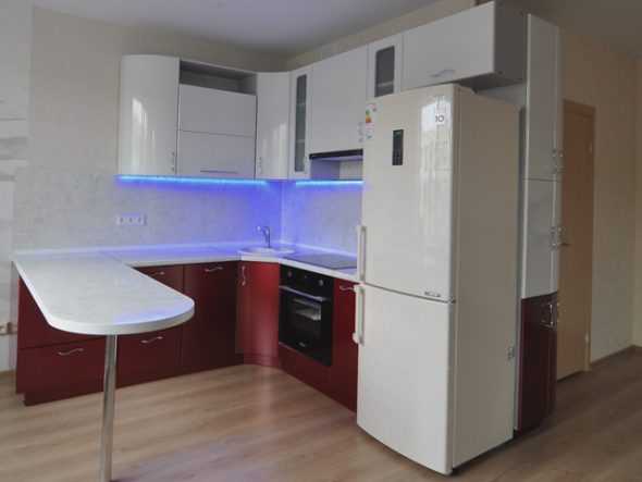 Маленький и удобный кухонный гарнитур со светодиодной подсветкой