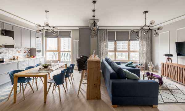 Если ваша кухня совмещена гостиной, то визуально всю зону готовки можно «отключить» с помощью направленных потоков света или подсвечивая только зону гостиной.