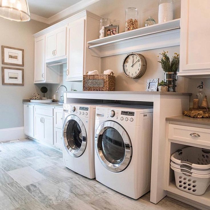 Современные модели стиральных машинок и варианты их установки позволяют максимально выгодно использовать все пространство помещения. Одним из распространенных решений для очень маленьких ванных комнат, или в случае перемещения машинки на кухню, является монтаж машинки под столешницей. Она может соединять соседние шкафы кухонного гарнитура или быть частью раковины.