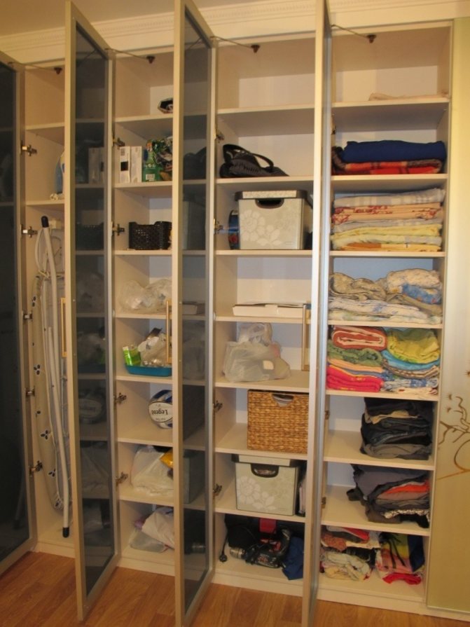 Любой двустворчатый шкаф или шкаф с раздвижными дверями можно превратить в кладовую, добавив специальные полки.