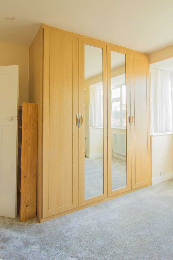 - При встроенном варианте шкафа дверца будет от пола до потолка, и, в большинстве случаев, такое же зеркало. И это самый простой способ существенно визуально расширить пространство, при чем, существенно.