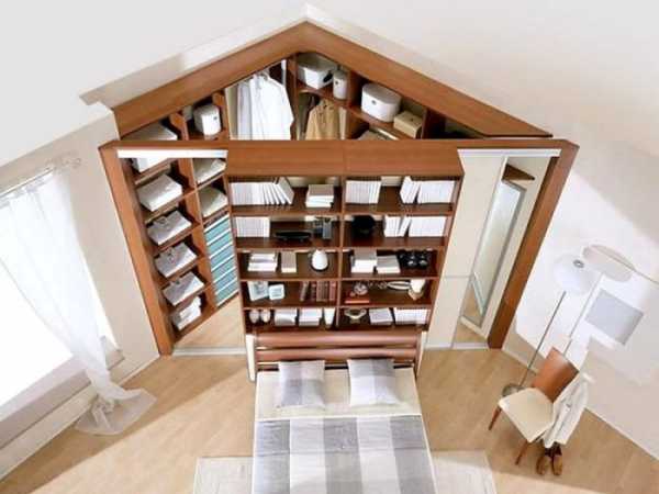 Размещая гардероб в мансарде, следует выбирать часть помещения с высотой не менее 1 метра. Иначе разместить все необходимое будет проблематично.