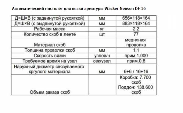 Рабочие характеристики пистолета для связывания арматуры.