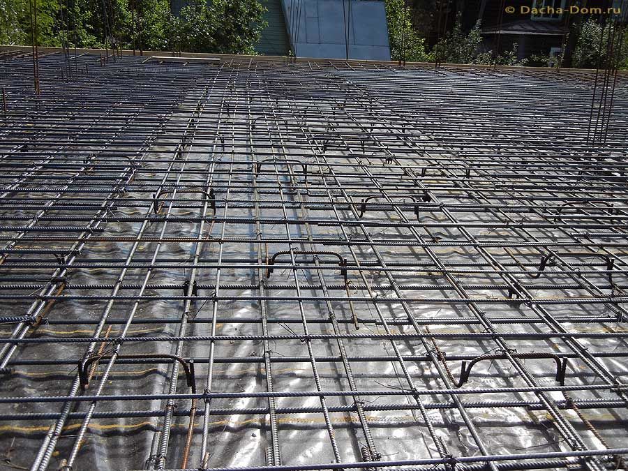 Монолитные железобетонные плиты могут служить фундаментом или перекрытием. В обоих случаях возможно самостоятельное изготовление арматурной сетки для них из стальных или композитных прутьев. Элементы соединяют сваркой (только металлические) или связывают проволокой.