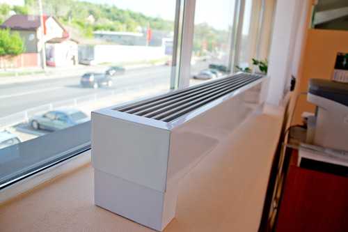 По сути, это оборудование заменяет собой обычный отопительный радиатор, но имеет ту же конструкцию, что и конвекторы других разновидностей. Соответственно, принцип работы тот же. Устройство может быть установлено на стену, на пол (и даже в пол), в плинтус. Выбор типа размещения зависит исключительно от ваших потребностей.