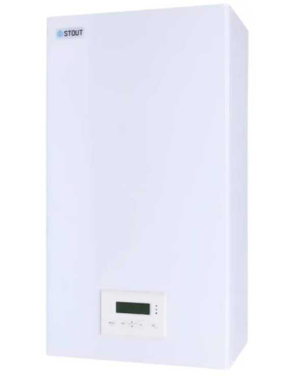 Открывает нашу подборку самых востребованных моделей электрических котлов прибор от компании Stout. Это электрический котел, рассчитанный на отопление дома. Максимальная мощность, которую может выдавать прибор – 9 кВт, однако это не мешает ему справляться с заявленными функциями. В конструкции модели заложено 2 ТЭНа, которые способствуют нагреву дома.