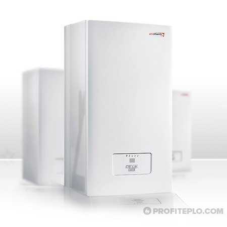 Площадь обогрева с помощью данного агрегата составляет 90 кв. м., при этом котел оснащен насосом для циркуляции воды, а также умеет работать на 6 ступенях мощности. Котел устанавливается на стену и работает от трехфазного или однофазного напряжения сети. Расширительный бак имеет объем 12 литров, одна из особенностей – возможность подключения телефона для управления.
