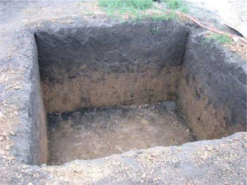 - Оставляете около полутора кубометров грунта (его мы будем применять для засыпки выгребного сооружения после завершения всех работ), а остальную землю вывозите. Плодородный верхний слой грунта можно высыпать на огород.