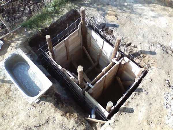 Или можно сделать её самому, забетонировав котлован или установив бетонные кольца на бетонное основание.