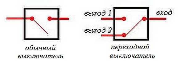 Двухклавишный проходной выключатель: схема подключения