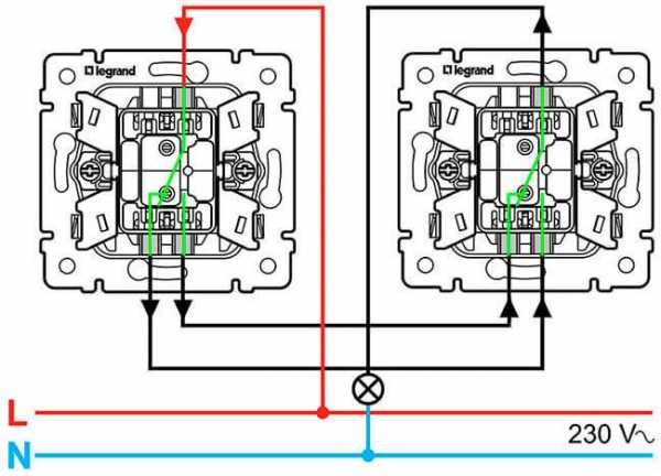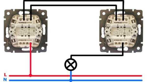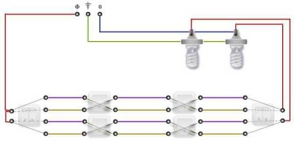 Схема подключения проходного выключателя для управления светильником из 2-х мест