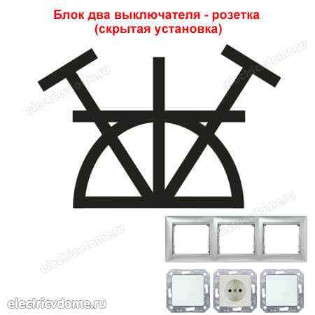 Итак, первый из них блок розетка выключатель. Обозначение для скрытой установки.