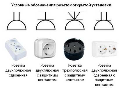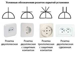 Обозначения розеток для внутренней и скрытой установки на схеме