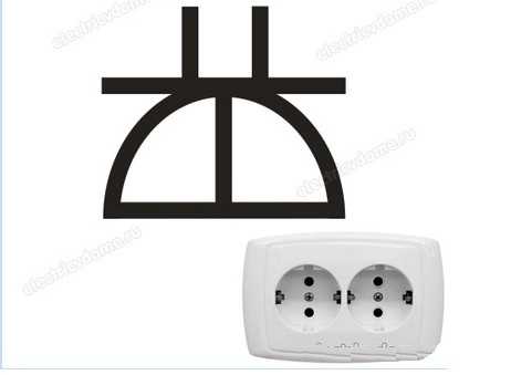 Часто в современных квартирах можно встретить двойные розетки. Это удобно и практично для современного человека, так как к ним можно подключить сразу два электроприбора. Их обозначение на схеме производится при помощи всё того же полукруга с учетом проводки (закрытой или открытой):