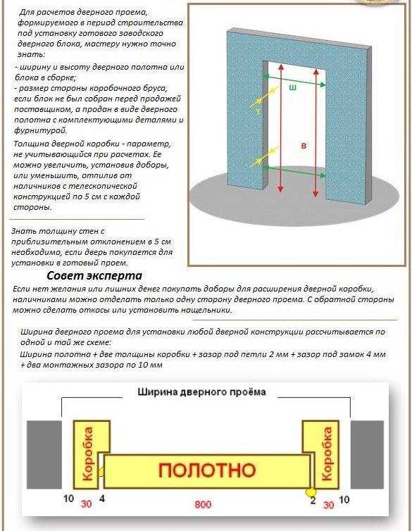 Исходя из расчетов, для монтажа двери понадобится просвет шире полотна на 100 и выше – на 80 мм.
